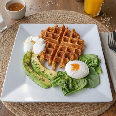 Inspirado en lo mejores ingredientes para pegarse un desayuno bien trancao sin pena ni culpas.. Wafle de Yuca, Aguacate, Yogurth Griego y huevo pochado.