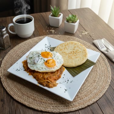 Receta original de la abuela a base de Papas, especies de la tierrita y huevo pochado, acompañado de arepa santandereana